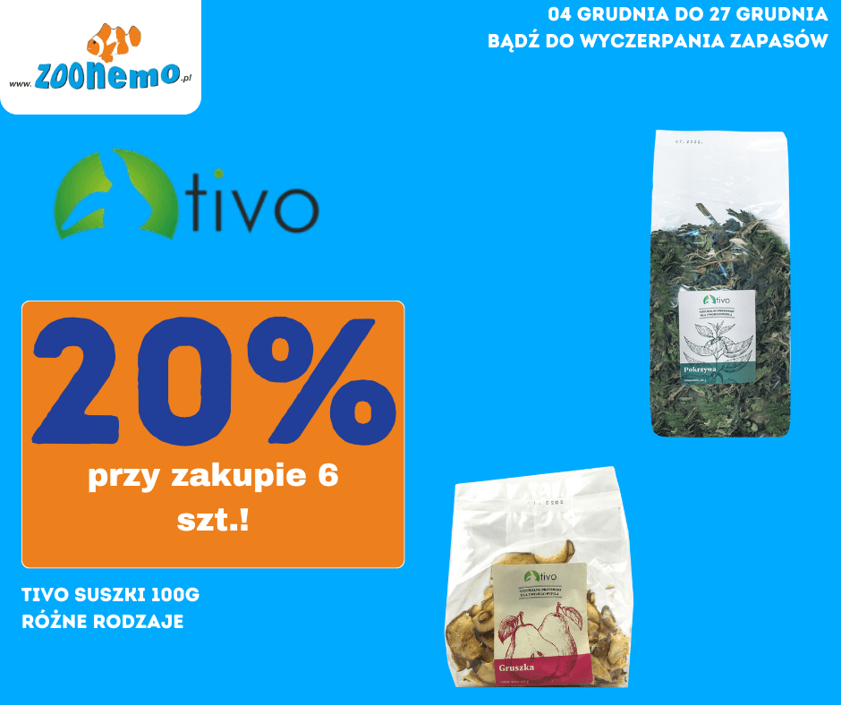 TIVO Suszki 100g (Różne Rodzaje): Aż 20% ZNIŻKI przy zakupie 6 sztuk! Idealne dla królików i gryzoni.