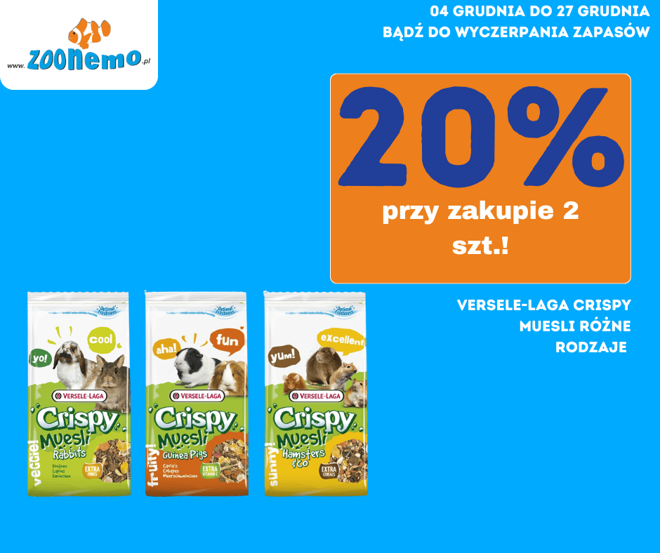 VERSELE-LAGA Crispy Muesli (Różne Rodzaje): 20% ZNIŻKI przy zakupie 2 sztuk! Zdrowe i smaczne musli dla Twojego małego przyjaciela.